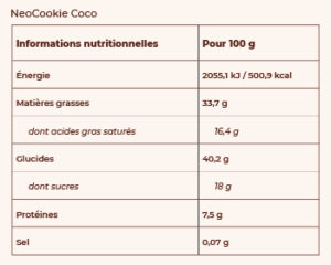 C’est un Neocookie, fait maison et moins sucré, où la noix de coco s’impose pleinement, sublimée par le chocolat blanc et relevée par la noisette. Il délivre toute la saveur intense de la noix de coco à chaque bouchée. Avec un cœur coulant de pâte à la noix de coco et noisette.